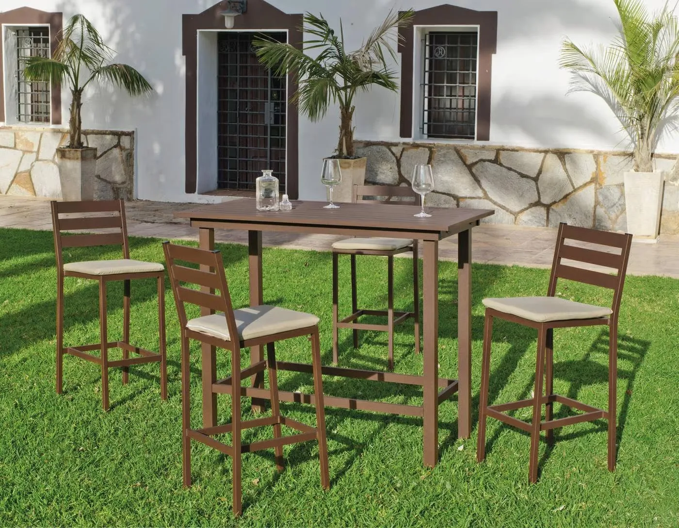 Taburete alto de jardín fabricado en aluminio Tropea