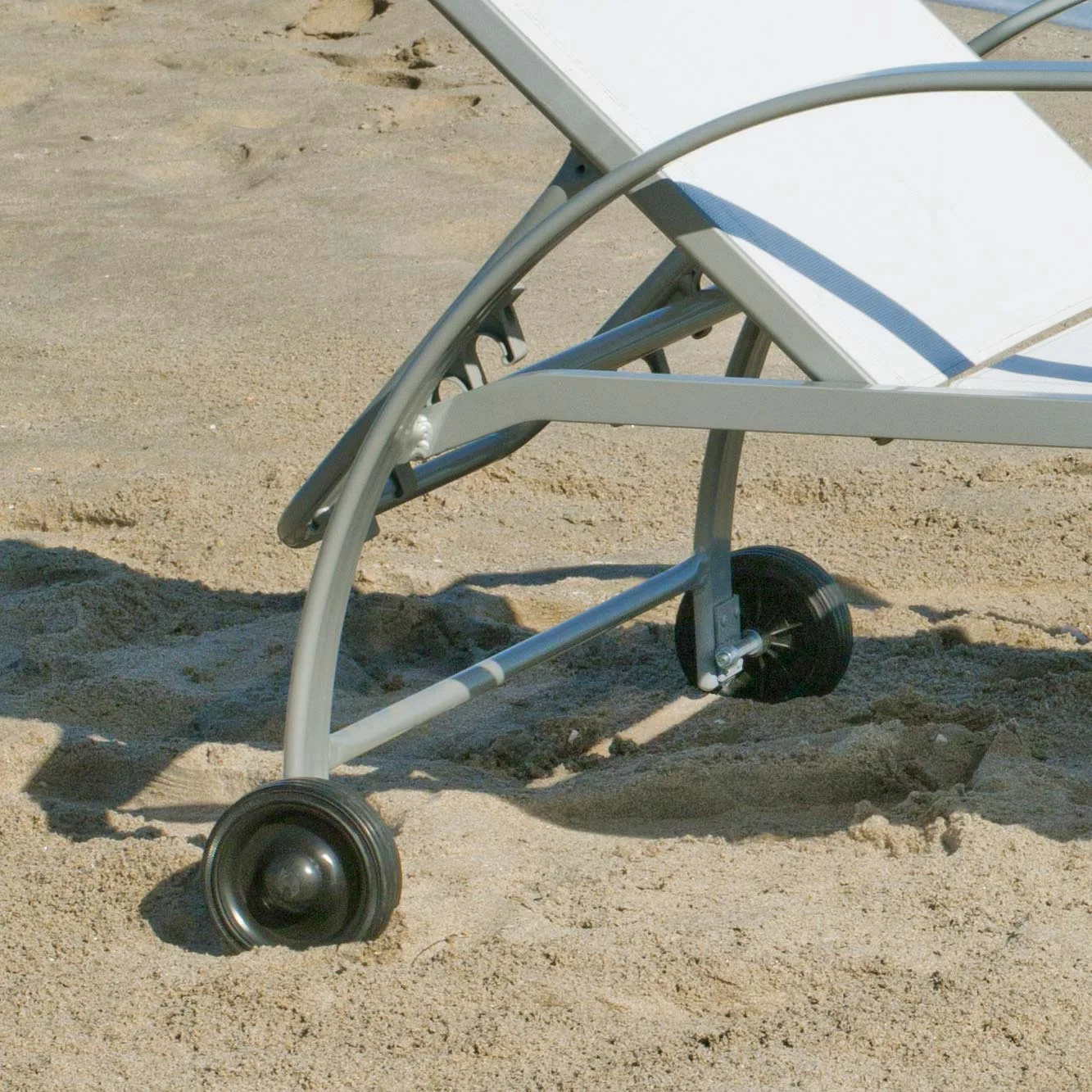 Nuestra tumbona de jardín con ruedas, fabricada en aluminio y tapicería de textilene, representa una fusión perfecta entre funcionalidad, comodidad y estilo en el entorno exterior. Diseñada para brindar una experiencia relajante al aire libre, esta pieza de mobiliario combina materiales de alta calidad con un diseño ergonómico y moderno.Su estructura de aluminio confiere a esta tumbona durabilidad y resistencia a las inclemencias del tiempo, lo que garantiza su longevidad incluso en condiciones ambientales adversas. Además, el aluminio es conocido por su ligereza, lo que facilita el movimiento y la reubicación de la tumbona según las preferencias de los usuarios.La tapicería de textilene añade un elemento de confort a la experiencia de descanso. El textilene es un tejido especialmente diseñado para su uso en exteriores, que se caracteriza por su resistencia al desgaste y su capacidad para repeler la humedad. Esto significa que la tumbona puede resistir la exposición prolongada al sol, la lluvia ocasional y otros elementos, sin que su aspecto ni su comodidad se vean afectados. Entre sus principales características destacamos: